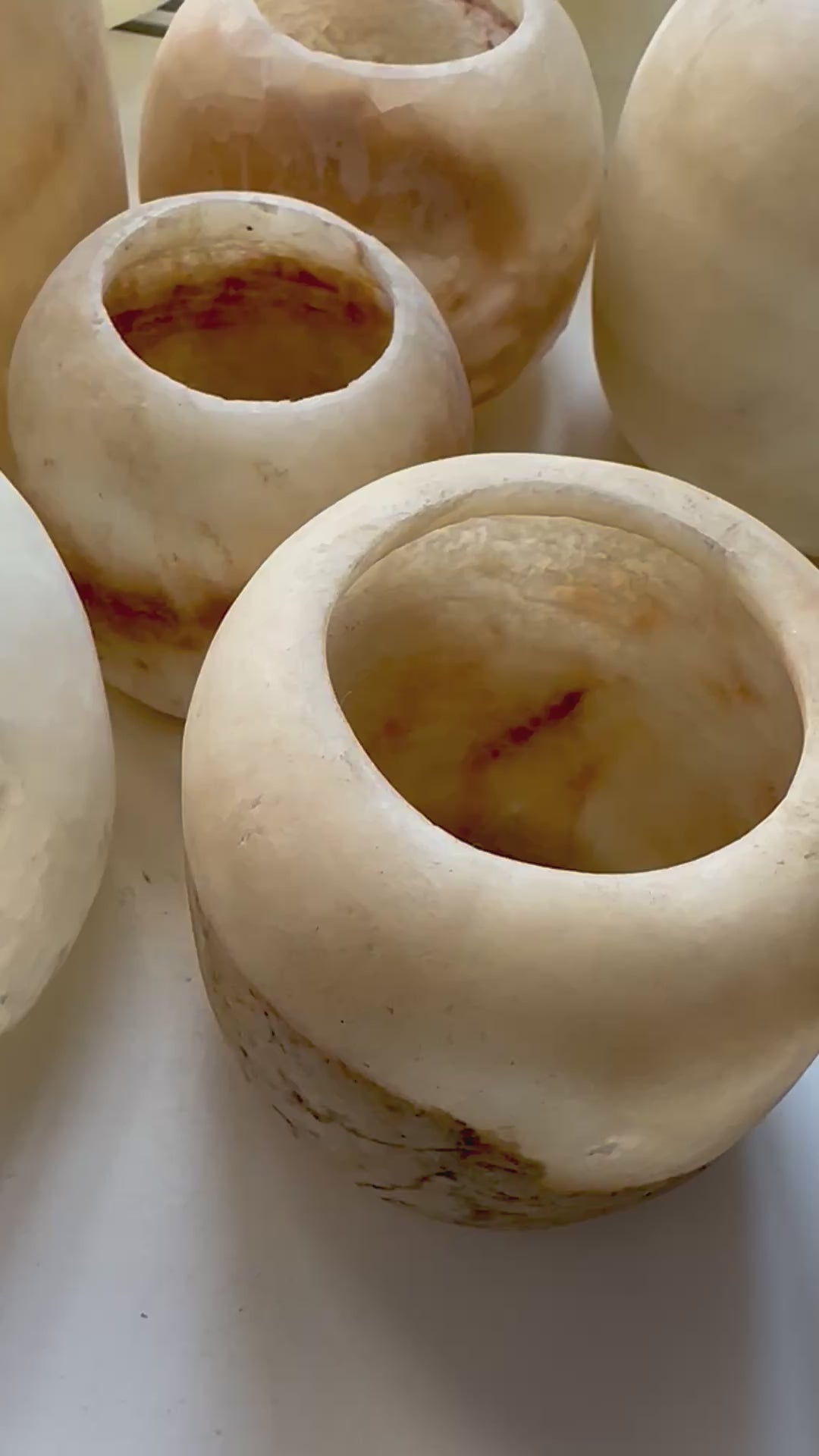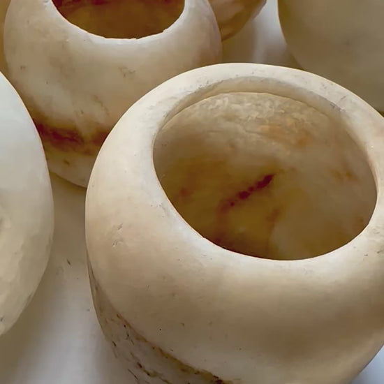 Onze alabaster waxinelichthouders komen in het wit of gekleurd.