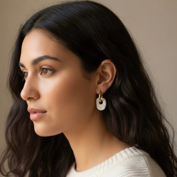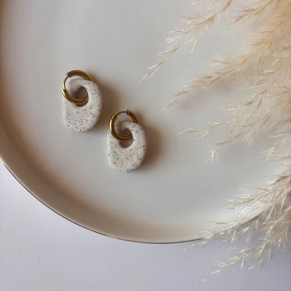 Oorbellen Lume: Handgemaakte oorringen in 18K verguld staal (⌀18 mm) met afneembare hangers van polymeerklei.