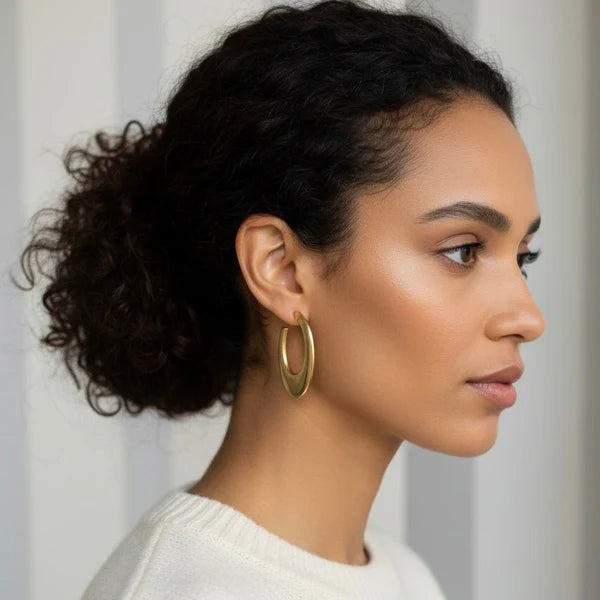 Oorbellen Minimal Loop: Goudkleurige, ronde oorringen (⌀ 20 mm) met een volumineus design.