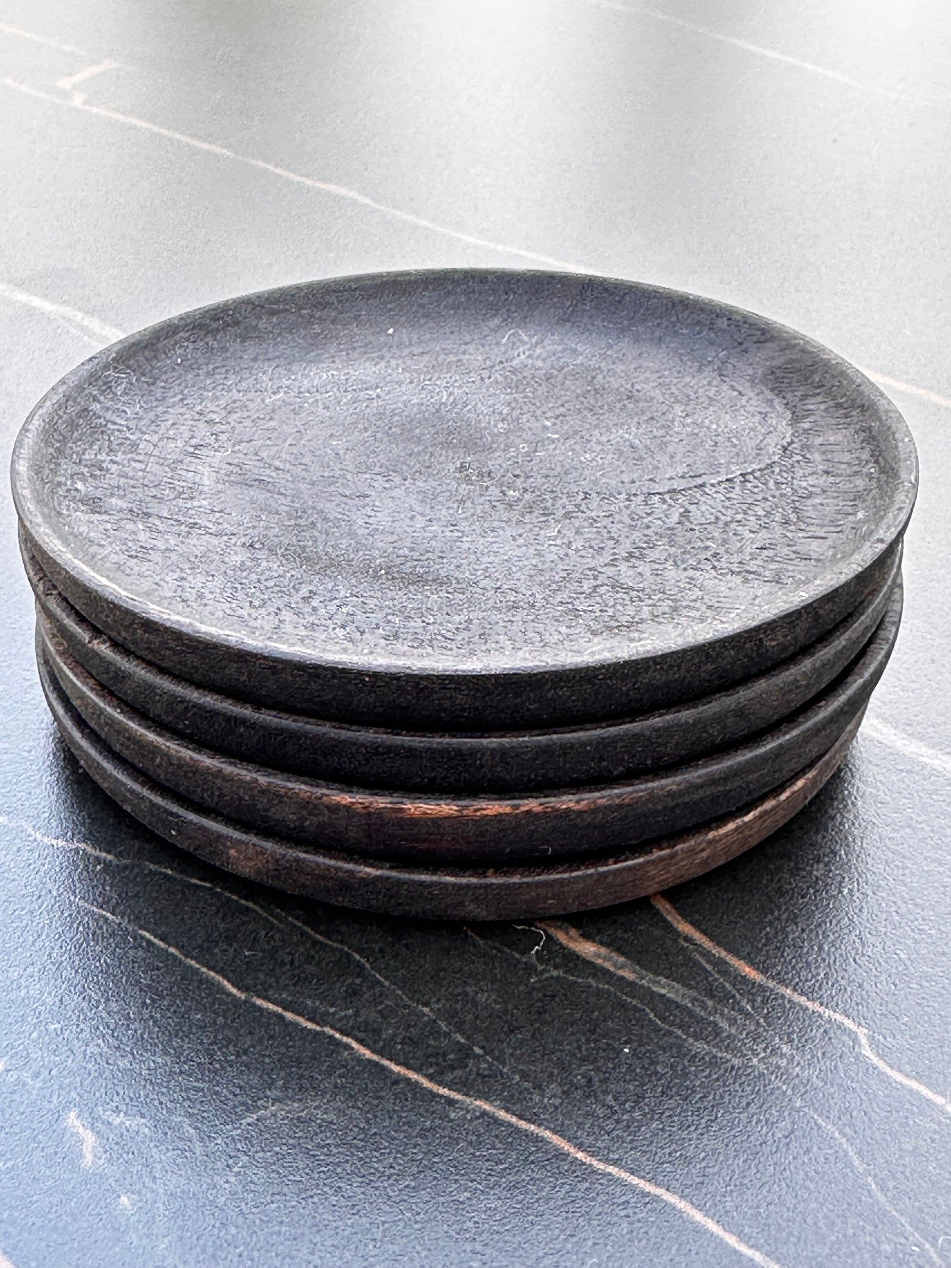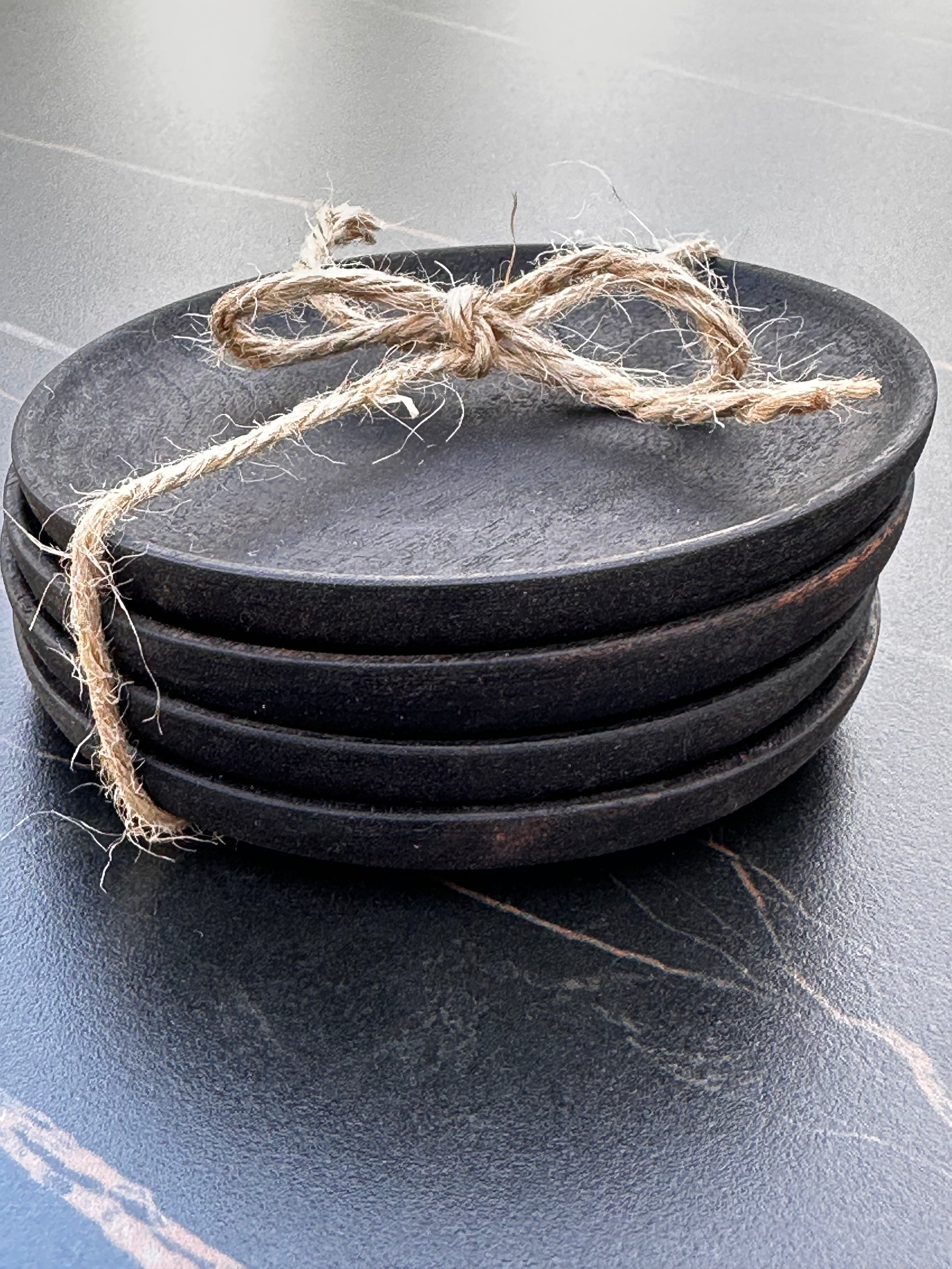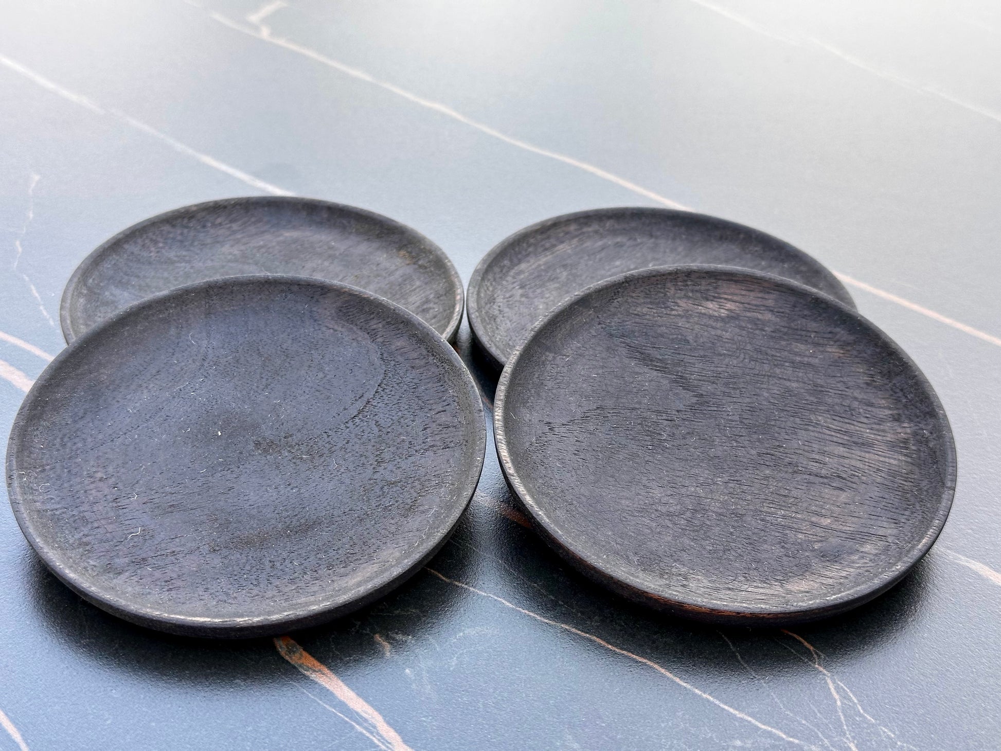 Stijlvol én praktisch: deze zwarte onderzetters van Dekocandle, gemaakt uit acaciahout, geven meteen karakter aan je tafel.