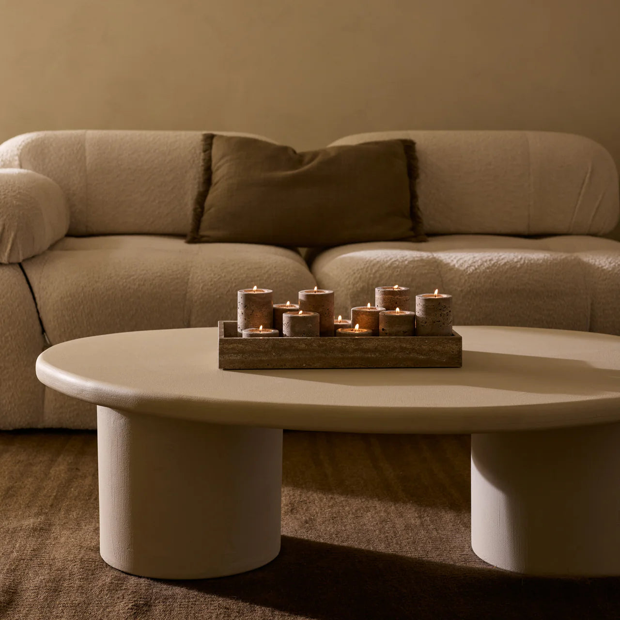 Deze theelichthouder in travertin brengt sfeer door eenvoud. De kleur Titanium verwijst naar de tint: warm grijs met een subtiel luxegevoel.